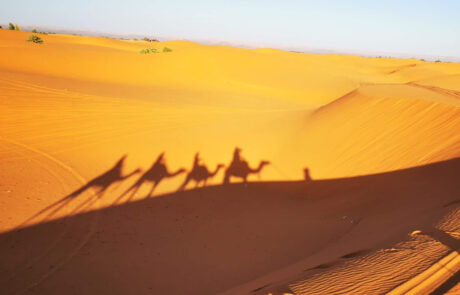 Przejedziemy przez wawóz Dades i Todra, i po południu dotrzemy do podnóża Merzougi, gdzie będą czekały na nas wielbłądy, aby zabrać nas do osady berberyjskiej na noc. Merzouga – tu imponujące wydmy osiągają wysokość 150 m i ciągną się na długości 20 km. To idealne miejsce dla osób poszukujących niezapomnianych wrażeń. Można tu bowiem spróbować sandboardingu, przemierzyć na wielbłądach rozgrzane piaski pustyni czy też spędzić noc w tradycyjnej berberyjskiej osadzie. Noc w namiotach.