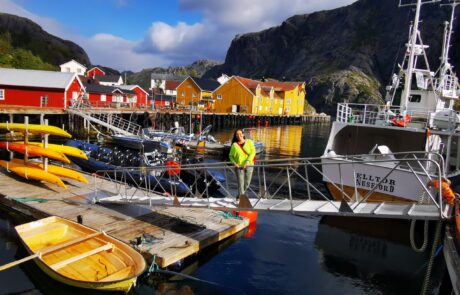 Po drodze zwiedzamy Svolvær – miasteczko usytuowane jest nad samym Morzem Norweskim z którego, wyrastają strome masywy górskie liczące ponad tysiąc metrów, pomiędzy którymi wcinają się wyraziste, lapidarne i malownicze fiordy. Ponadto, charakterystyczna nordycka zabudowa kolorowych domków rybackich RORBU, położonych na palach przy samej linii brzegowej, urozmaica i przyozdabia surowy i sterylny krajobraz archipelagu, tworząc unikalną i jedyną w swoim rodzaju wizytówkę całych Lofotów. Rorbu położone są tuż przy morskim brzegu, ze względu na ich funkcję i praktyczne wykorzystanie. Od początku XX wieku domki wykorzystywane były jako kwatery lokalnych rybaków utrzymujących się głównie z połowów arktycznego dorsza. Obecnie, wykorzystywane są one jedynie w celach turystycznych, jako domki letniskowe dla turystów umożliwiając przyjezdnym przeżycie typowo norweskich wakacji, do Ramberg. P drodze zwiedzamy
