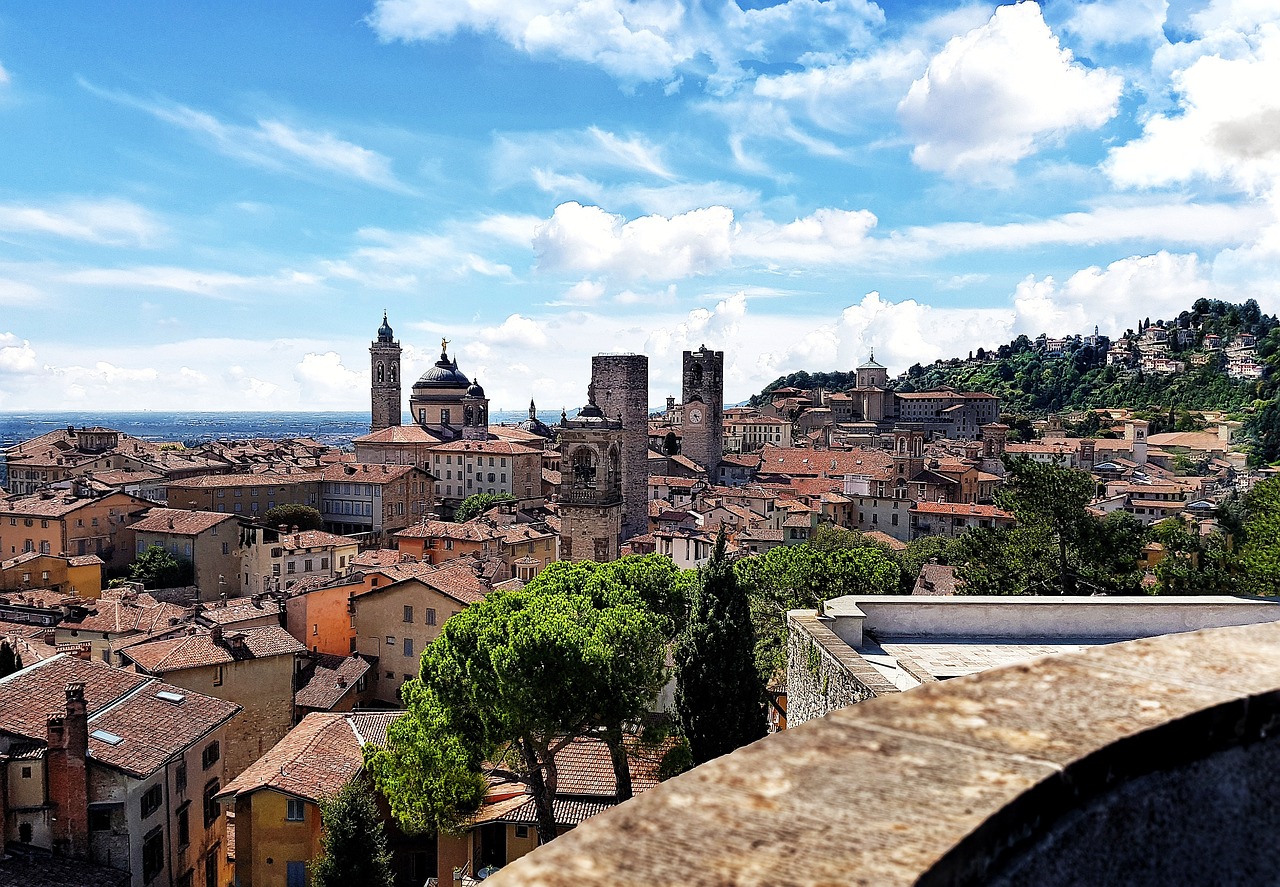 Zaczniemy od zwiedzania Bergamo. Bergamo zachwyca pięknym położeniem, atmosferą, urokliwą starówką i świetnymi restauracjami. Otoczone murami historyczne centrum Bergamo zachwyca turystów średniowieczną zabudową, ukrytymi dziedzińcami i arkadami. Duża część uliczek Città Alta jest praktycznie zamknięta dla ruchu samochodowego. Città Alta to także tętniące życiem place, a wśród nich najważniejsze to Piazza Vecchia i Piazza del Duomo. Przy drugim z placów znajduje się XIV-wieczna Bazylika Santa Maria Maggiore, a obok niej Cappella Colleoni, która jest jednym z najcenniejszych zabytków miasta. Górne miasto – Città Alta – położone jest na wzgórzu, ale nad nim kawałek na zachód wznosi się kolejne, jeszcze wyżej sięgające wzgórze i zamek San Vigilio. Właśnie stąd najlepiej widać zaczynające się tuż za miastem Alpy, a jesienią dodatkowo zachwycają kolory przyrody i złote, sypiące się z drzew liście. To również doskonałe miejsce, by odpocząć na ławce w otoczeniu przyrody.